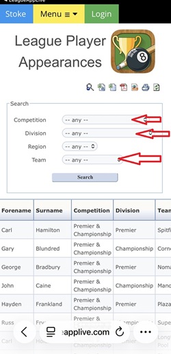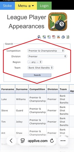 enter in 3 drop menu's **Competition - Premier & Championship **Division - Either Premier or Championship **Team - Whoever you play for Leave Region Blank |
